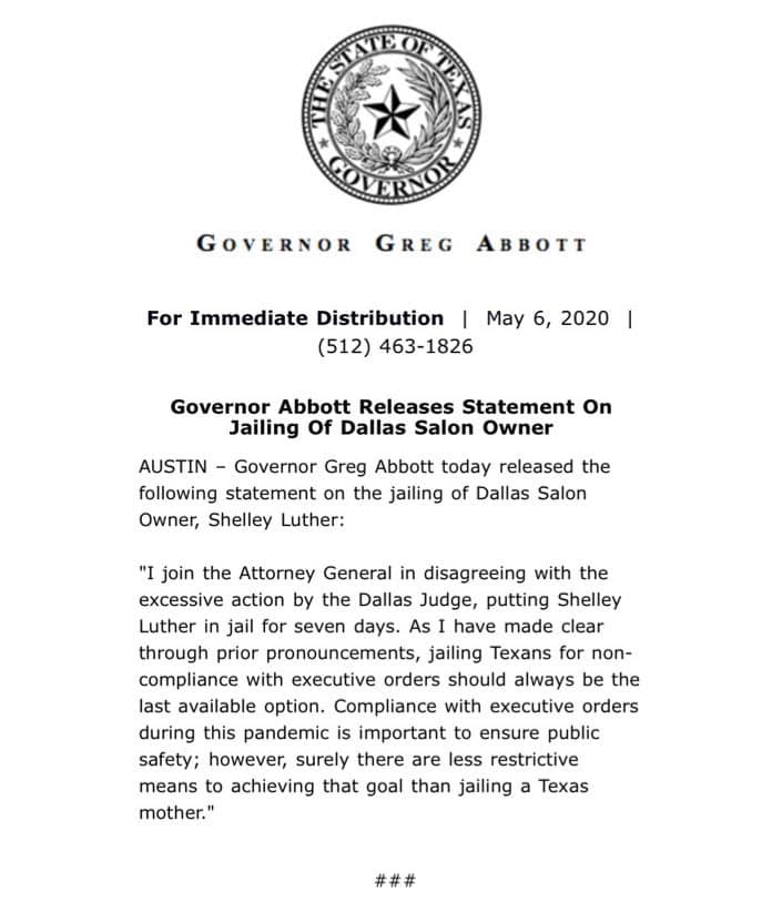 this week. A salon owner in Dallas, Shelley Luther, had followed shutdown